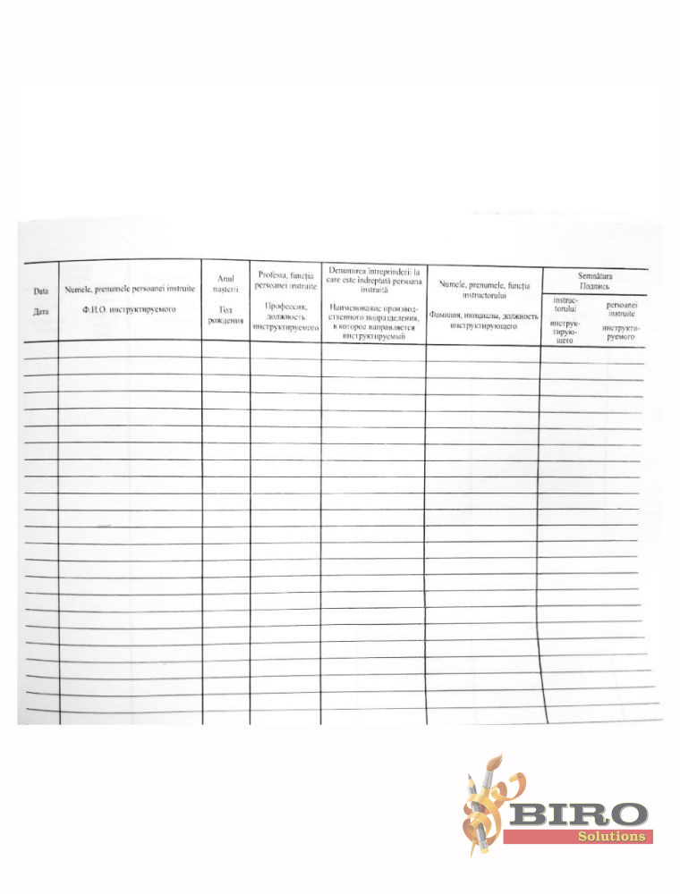 Biro Solutions oferă registre conforme cu standardele de securitate antiincendiară, potrivite pentru orice angajator care trebuie să documenteze instruirea PSI a angajaților. Beneficiați de prețuri accesibile și livrare rapidă în toată Republica Moldova.