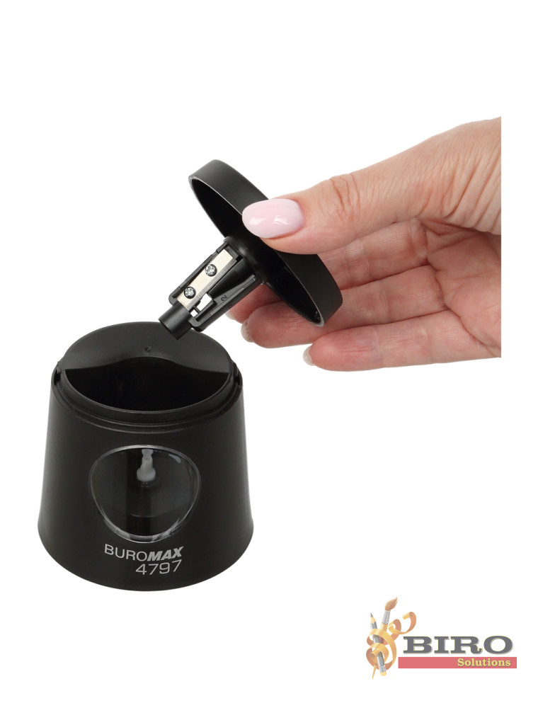 Ascuțitoare automată, 1 gaură,cu recipient, neagra, BUROMAX