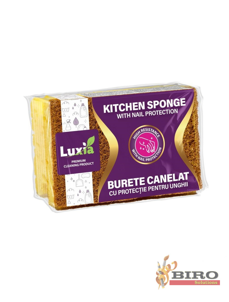 Buretele pentru vase LUXIA Premium, cod LUX-4023, este un burete canelat de înaltă calitate, ideal pentru spălarea eficientă a veselei, tigăilor și ustensilelor de bucătărie.