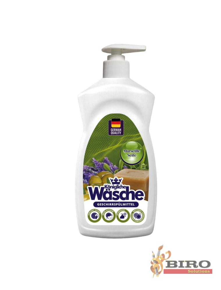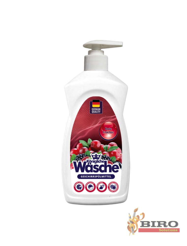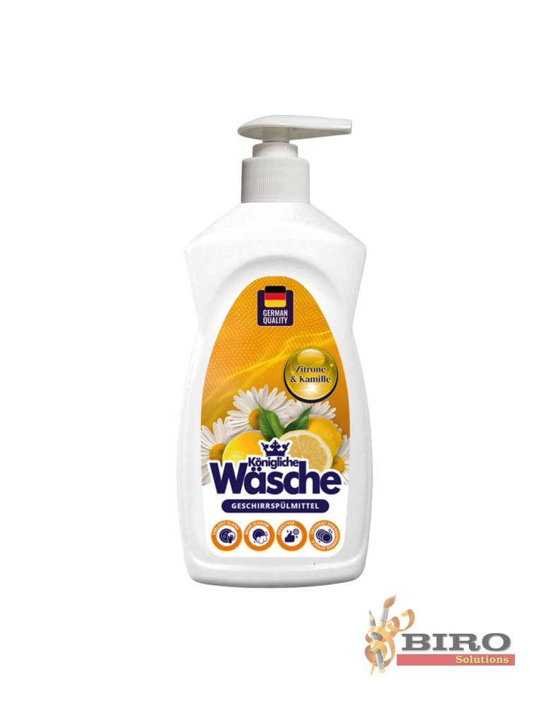 Konigliche Wasche – lichid pentru spălarea vaselor cu pompiță, 500 g, este ideal pentru curățarea zilnică a veselei și ustensilelor de bucătărie. Formula sa activă îndepărtează rapid grăsimea, murdăria și mirosurile neplăcute, lăsând vasele curate și strălucitoare.