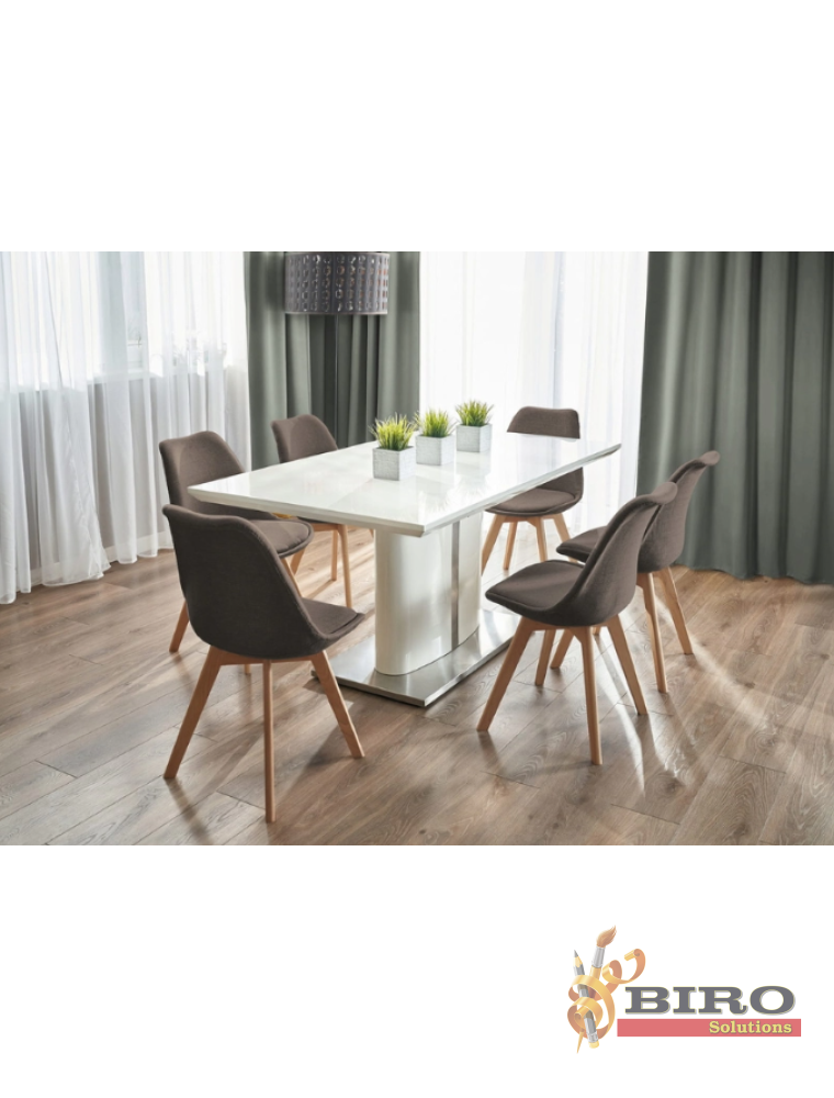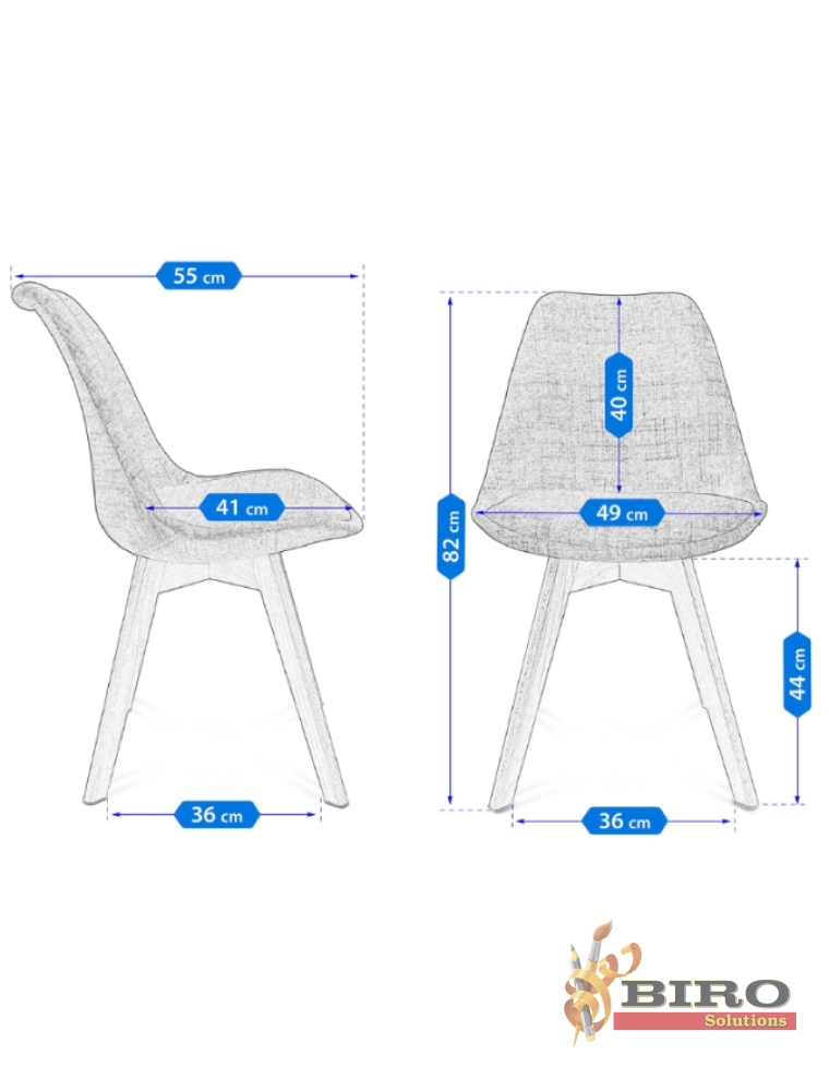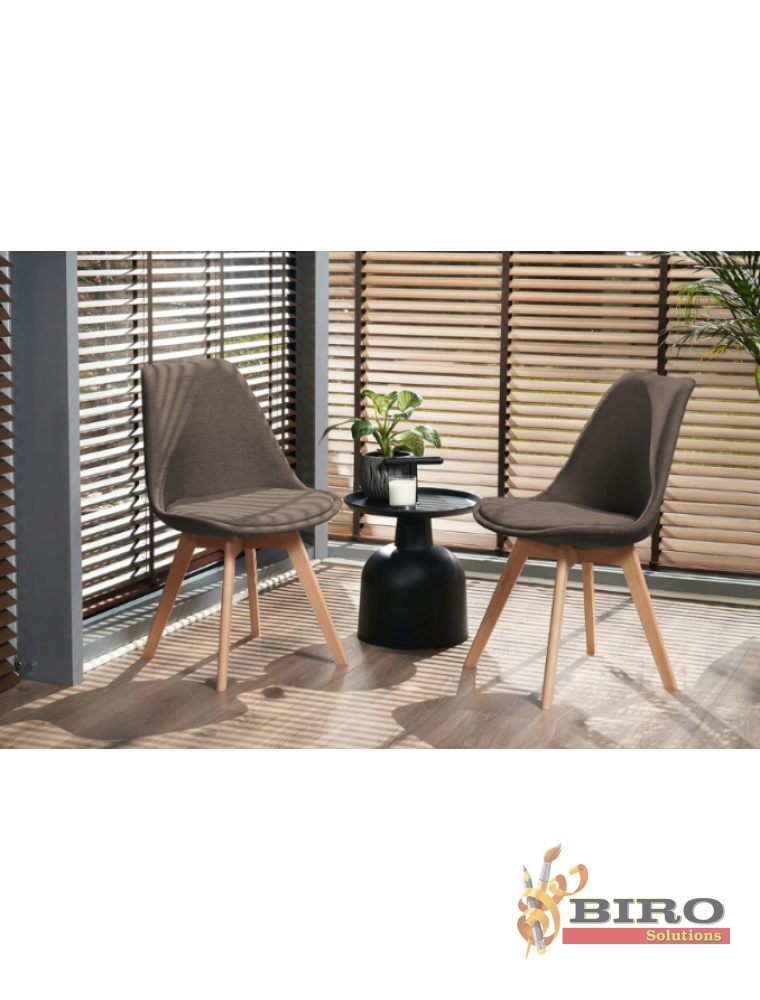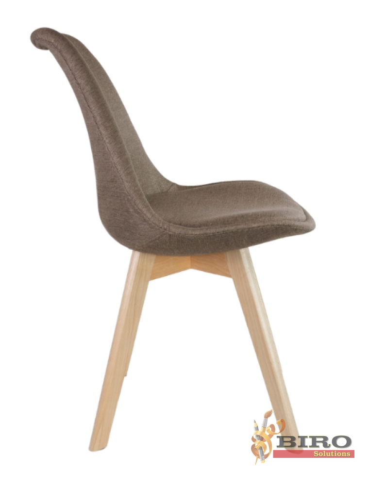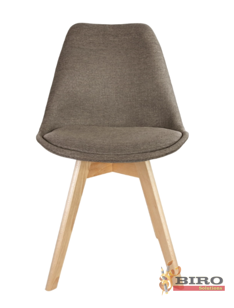 Are un spătar perfect conturat, acoperit cu țesătură, care, combinat cu o pernă moale plasată pe scaun, oferă un confort deosebit. Picioarele din lemn de fag în nuanța sa deschisă oferă stabilitate și rezistență. Scaunul este foarte practic și funcțional.