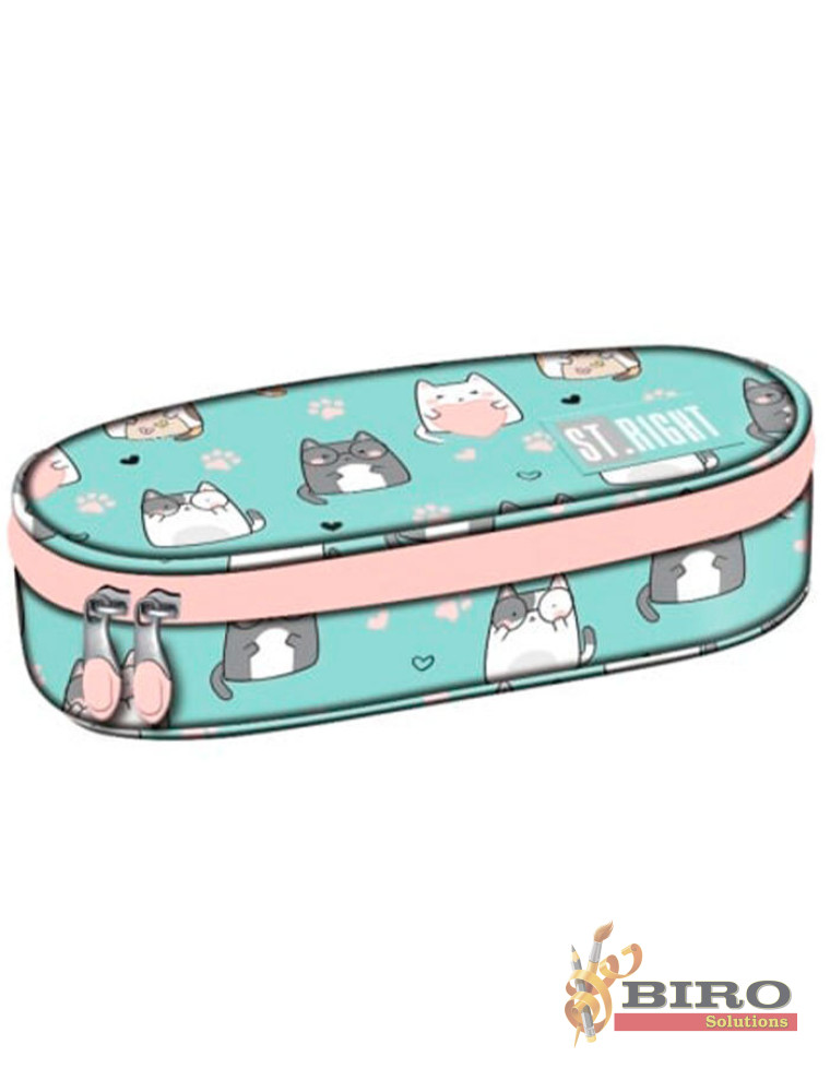 Penarul rigid St.Right cu clapetă interioară din colecția Charming Cats PC01 combină funcționalitatea cu un design adorabil. Fabricat din materiale rezistente și de calitate, penarul este bine compartimentat, oferind spațiu pentru creioane, pixuri, markere și alte rechizite școlare. Clapeta interioară ajută la o organizare eficientă, menținând ordinea în penar.
