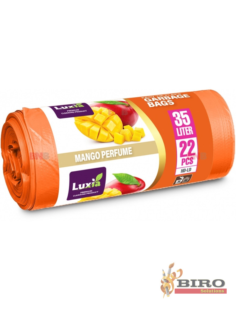 Pungile pentru gunoi LUXIA cu urechi, 35 L, cod LUX-4074, oferă o soluție practică și parfumată pentru gestionarea deșeurilor din locuințe, birouri sau spații comerciale. Parfumul de mango ajută la neutralizarea mirosurilor neplăcute și conferă o senzație plăcută de prospețime.