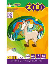Hîrtie colorată DUBLĂ A4, 14 foi, 7 culori, 90gr. Kids Line ZIBI