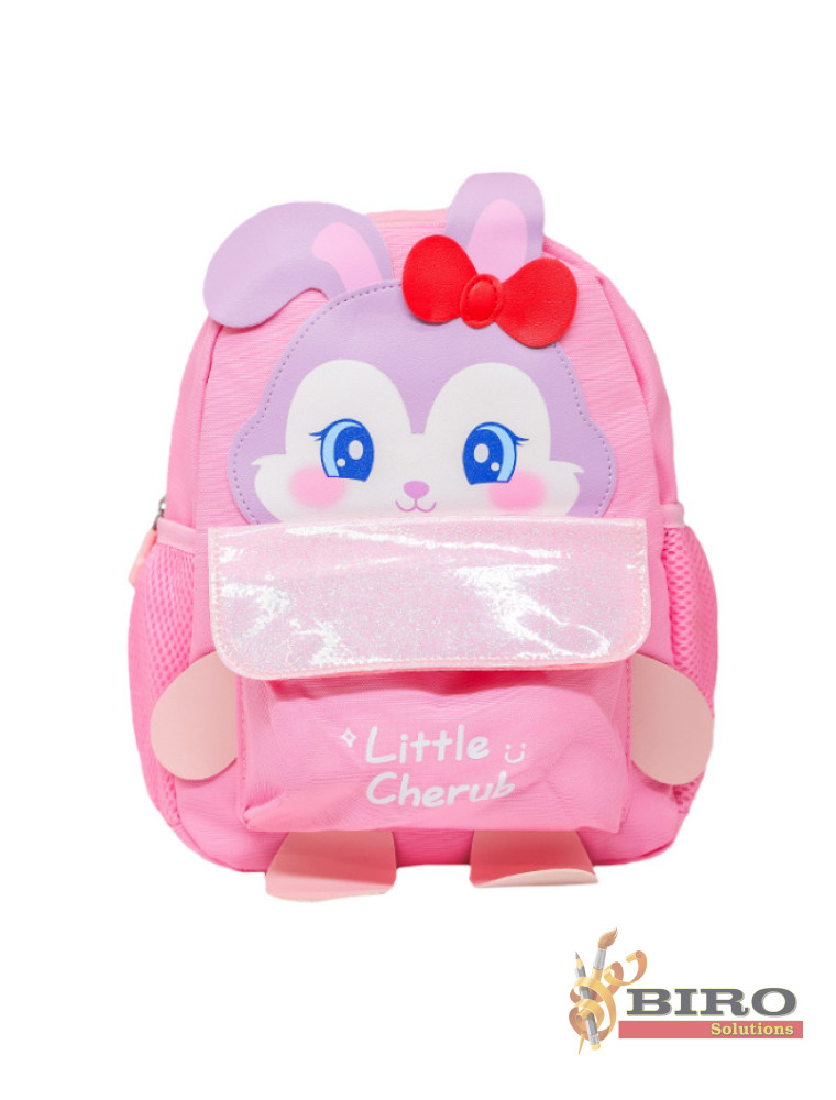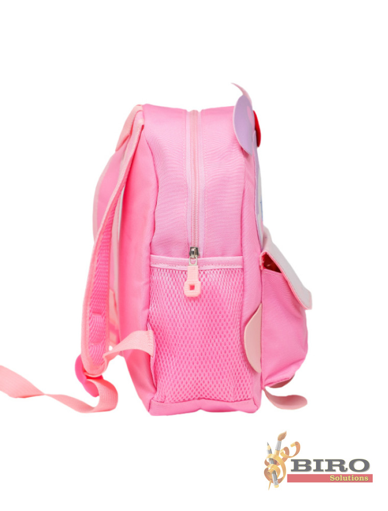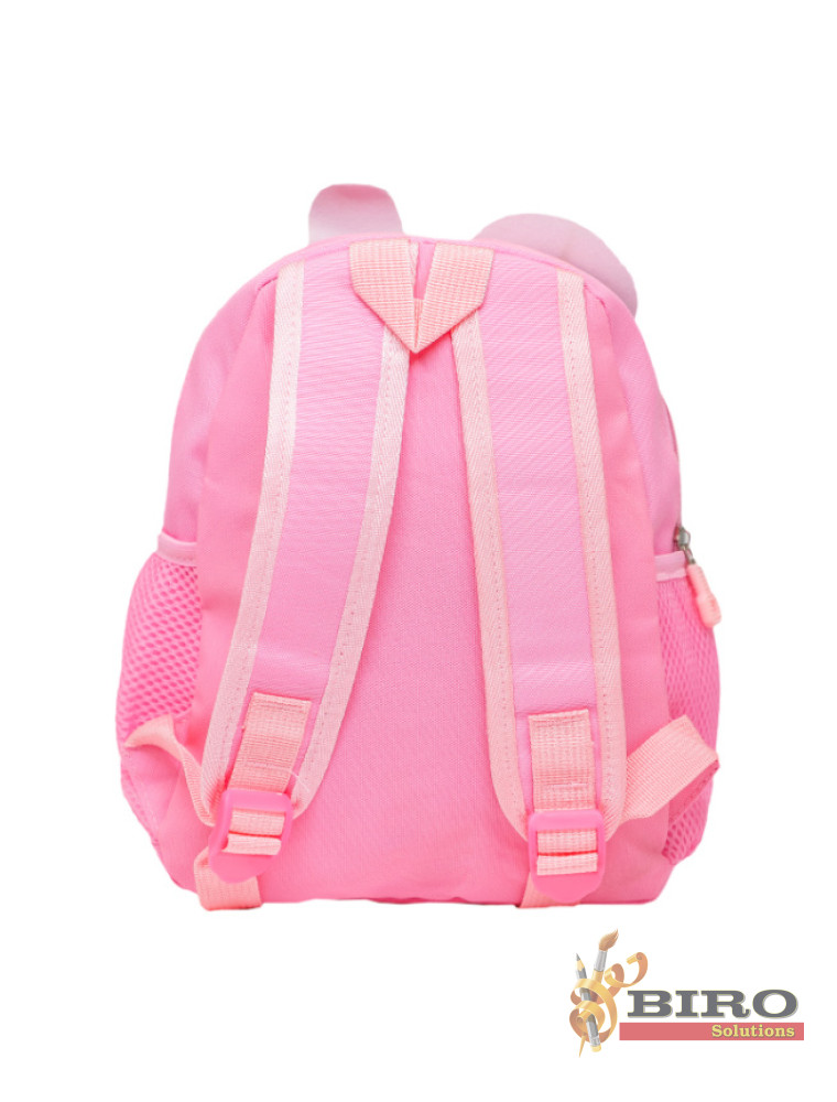 Ghiozdanul Mini 5L Iepuraș, în culoarea roz, este adorat de fetițele care merg la grădiniță. Are un design jucăuș cu urechiușe și față de iepuraș, fiind nu doar practic, ci și extrem de simpatic.
