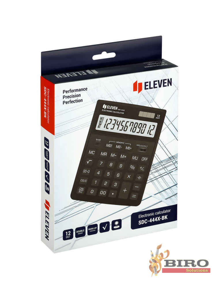 Eleven SDC444XBK este un calculator de birou modern, cu un aspect profesional și funcții esențiale pentru activități contabile și administrative. Combinația de culori negru-argintiu și ecranul mare înclinat îl fac atât elegant, cât și eficient.