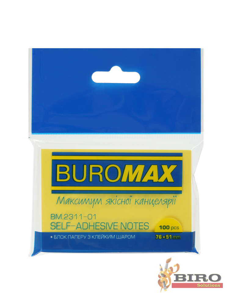 Hîrtie pentru notițe cu lipici PASTEL, 51,76 mm, 100 l., galben BUROMAX