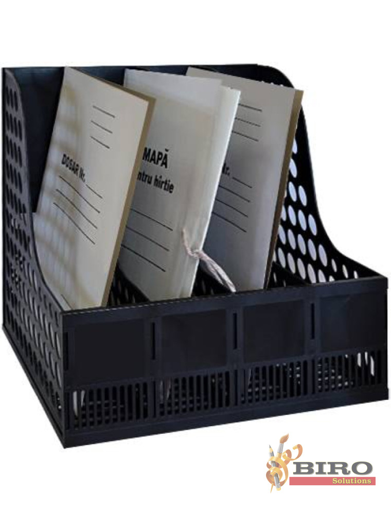 Suport vertical, fabricat din plastic de inalta calitate, cu 4 sectiuni potrivite pentru documente si dosare, efectiv in special pentru stocarea documentelor format A4. ;