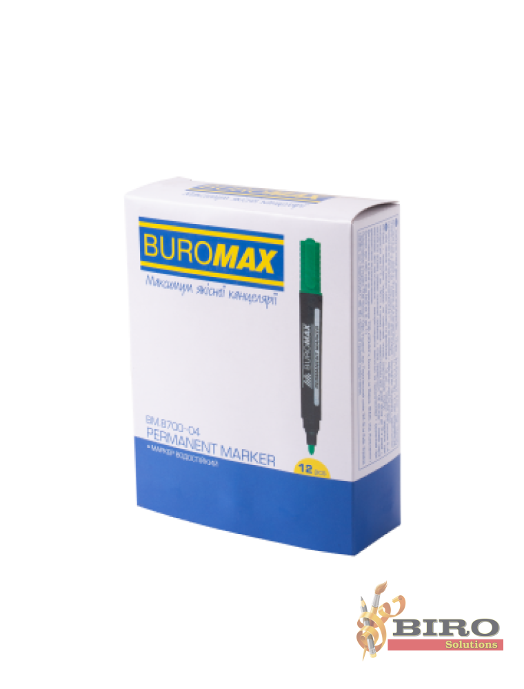 Markerul permanent BUROMAX, de culoare verde, cu vârf de 2–4 mm și bază alcoolică, este ideal pentru marcaje clare, vizibile și rezistente la apă. Cerneala se usucă rapid, nu se estompează și asigură o scriere durabilă în timp.