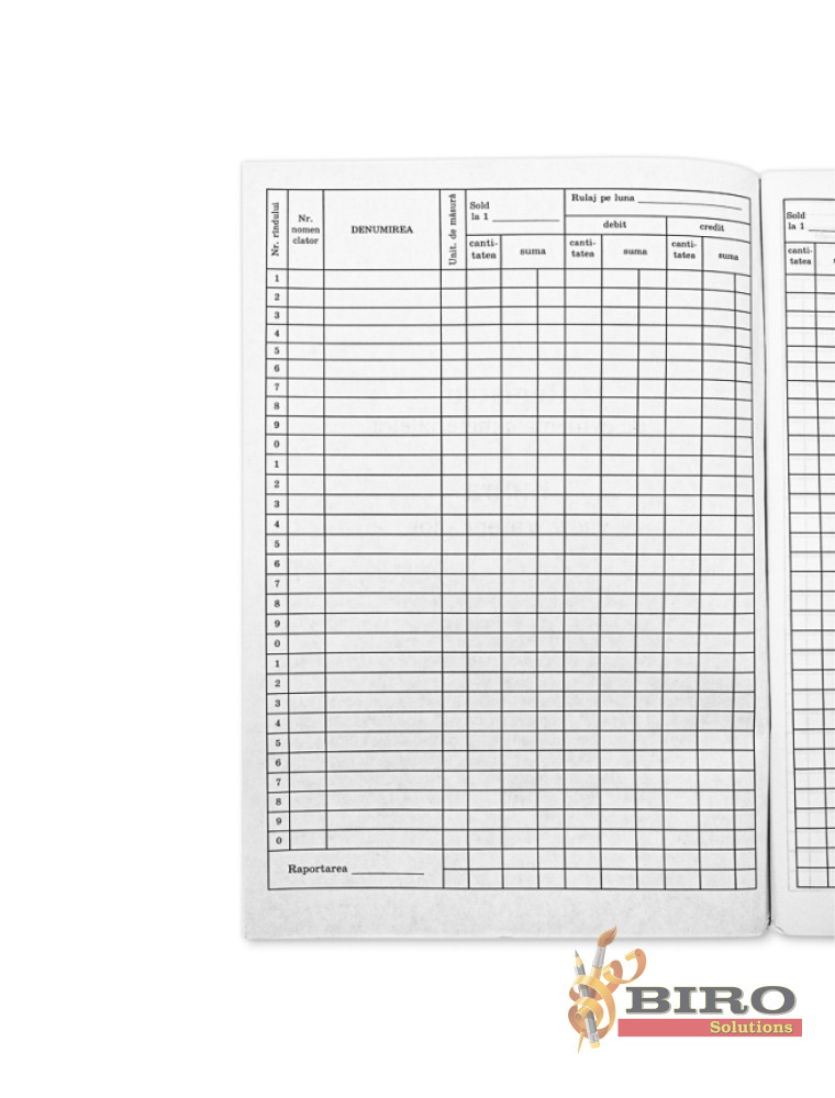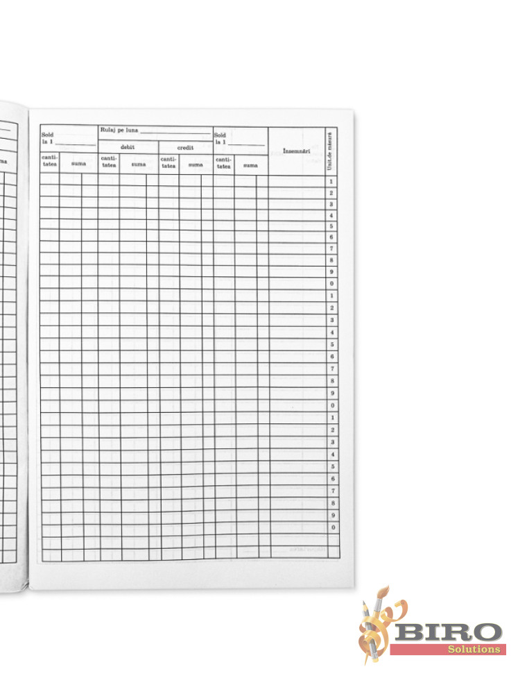 Structura clară a paginilor permite înregistrarea sistematică a intrărilor și ieșirilor, facilitând evidența corectă a materialelor. Este ideal pentru utilizare în birouri, depozite, instituții sau activități comerciale.