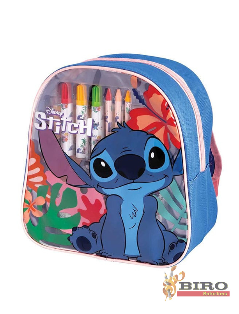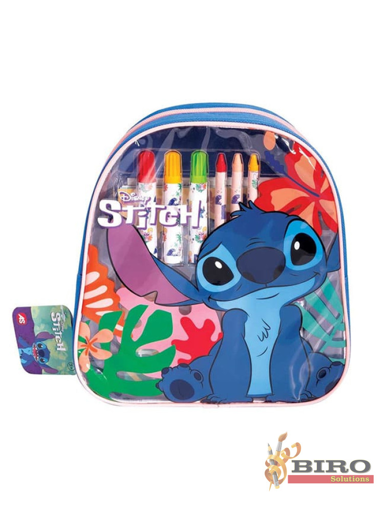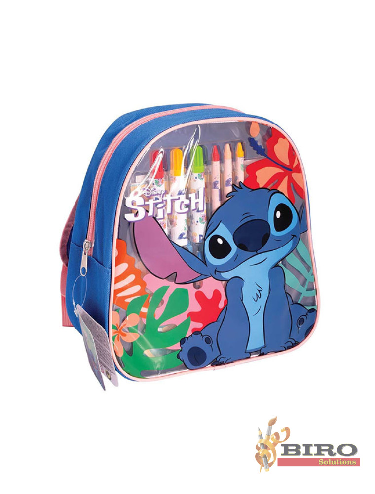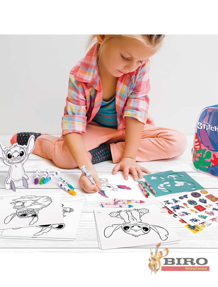 Luați rucsacul elegant și la modă cu voi la plimbări, în mașină, în călătorii și desenați-l pe Stitch cu creioane și markere. Apoi, faceți desenele și mai impresionante, adăugându-le autocolante pe care le veți găsi în rucsac.